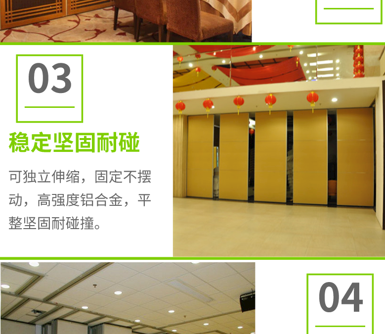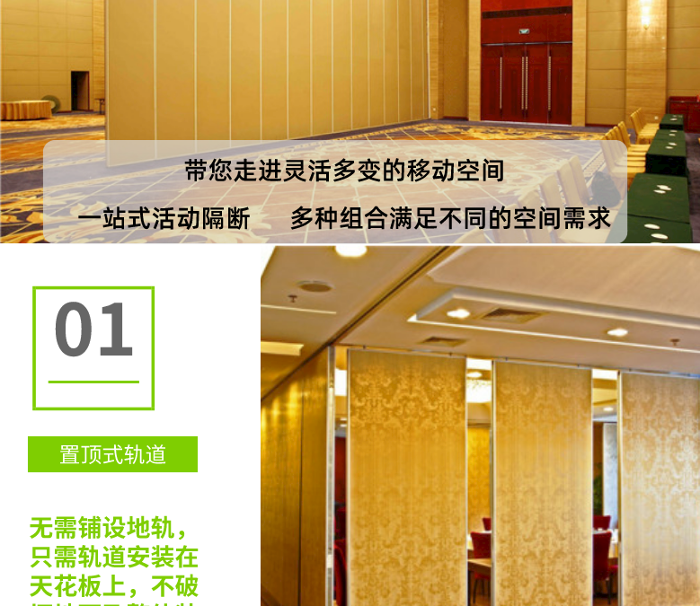 活動隔斷是一種根據(jù)需要隨時可以把大空間分割成小空間或把小空間連成大空間、具有一般墻體功能的活動墻,能起一廳多能一房多用的作用。